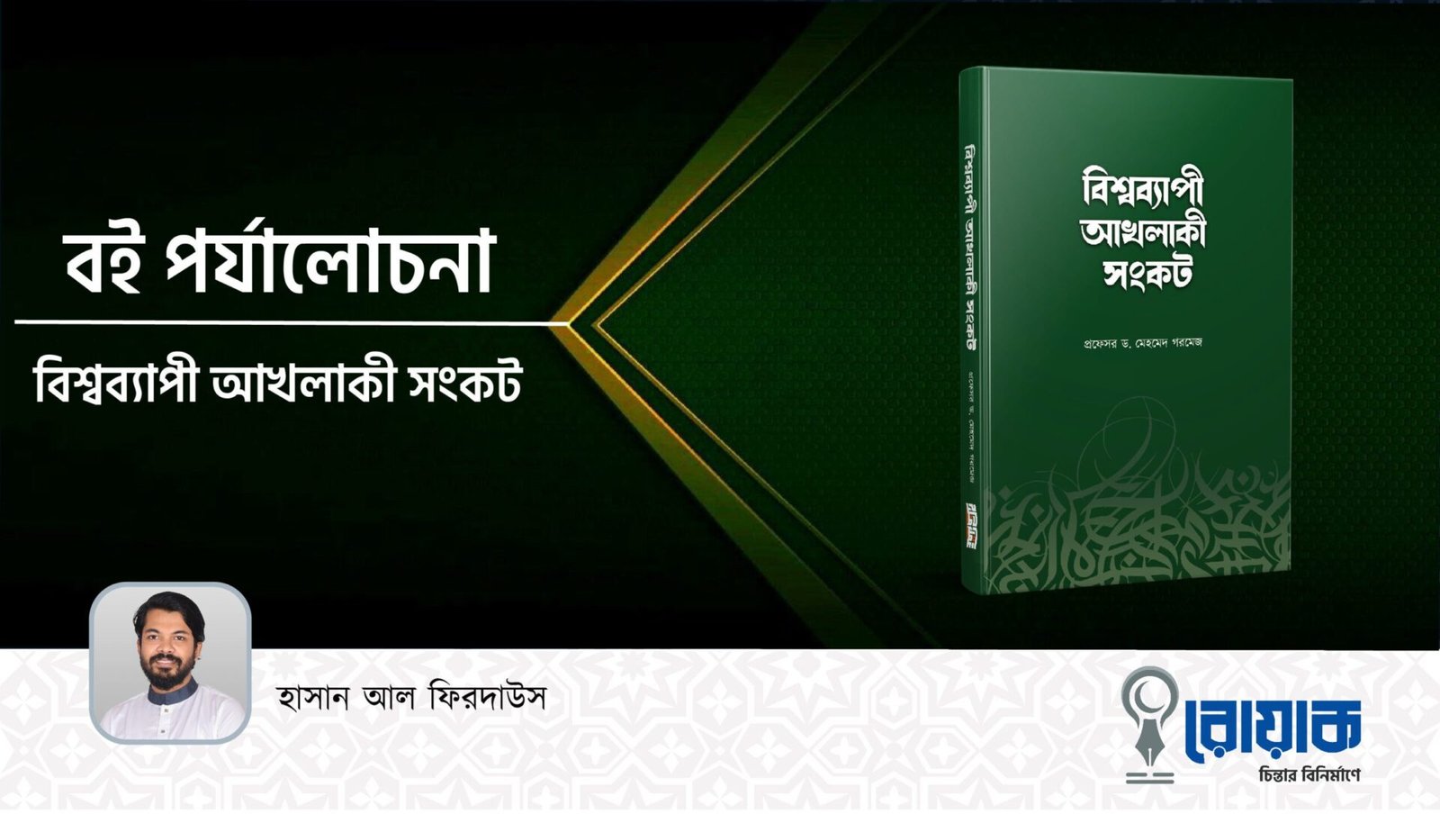 সম্মানিত উস্তাদ প্রফেসর ড. মেহমেদ গরমেজ মুসলিম উম্মাহর প্রখ্যাত একজন আলেম, উসূলবিদ ও মুতাফাক্কির। সুদীর্ঘ ৪০ বছরের অক্লান্ত অধ্যয়ন, উম্মাহর মহান আলেমগণের সাথে যোগাযোগ, বিভিন্ন অঞ্চল পরিদর্শনের ফলে লব্ধ জ্ঞানের প্রেক্ষিতে অসাধারণ পর্যালোচনার মাধ্যমে তিনি ইসলামী সভ্যতার পতনের পেছনে সক্রিয় কারণ হিসেবে চিহ্নিত করেছেন ‘আখলাক বিহীনতা’কে। ‘আখলাক’ ইসলামী সভ্যতার গুরুত্বপূর্ণ একটি পরিভাষার নাম। মহান আল্লাহ রাব্বুল আলামীনের অন্যতম একটি উদ্দেশ্য হলো তার বান্দা পৃথিবীতে আখলাকের বিনির্মাণ করবে। রিসালাতে মুহাম্মদীর উদ্দেশ্যও আখলাকের বিনির্মাণ। ড. মেহমেদ গরমেজের মতে এ আখলাকের মাধ্যমেই ইসলামী সভ্যতা অত্যুচ্চ অবস্থানে পৌঁছেছিলো, আর আখলাক হারিয়ে ফেলার কারণেই সভ্যতার পতন ঘটে এবং আখলাক বিহীনতার কারণেই আজ ইসলামী সভ্যতা পুনরায় ঘুরে দাঁড়াতে পারছে না।