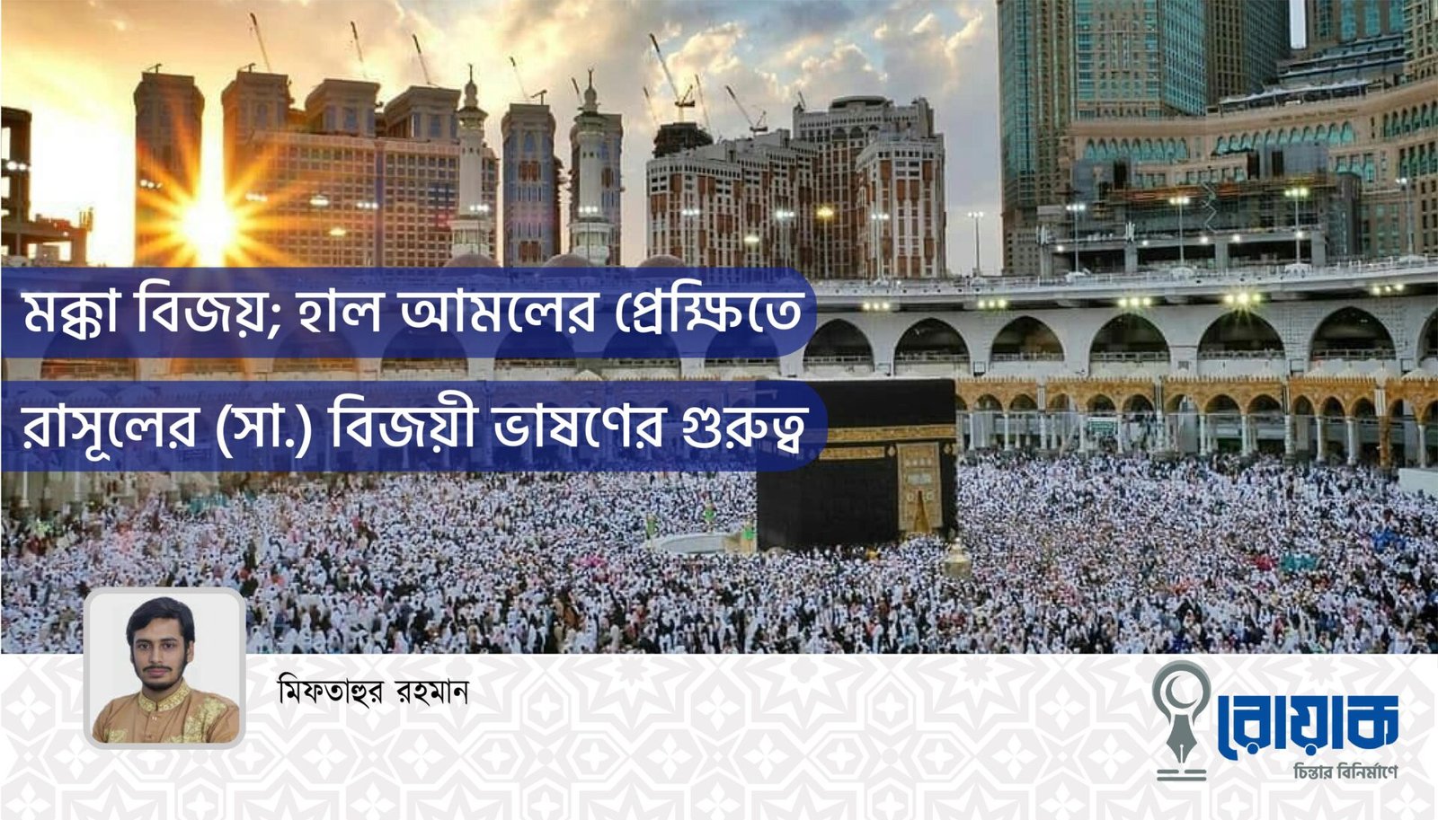 মক্কা বিজয়ের পর কাবার প্রাঙ্গনে দাঁড়িয়ে রাসূলের সেই ভাষণটি আমাদের আকল ও বিবেকের জন্য চক্ষু উন্মোচনকারী হোক এবং আগামীর নতুন দুনিয়া বিনির্মাণের ক্ষেত্রে আমাদের সকলকেই একেকজন মুজাহিদ হিসেবে মহান রব কবুল করে নিক, এই দোয়া ও কামনা করি। আল্লাহুম্মা আমীন।